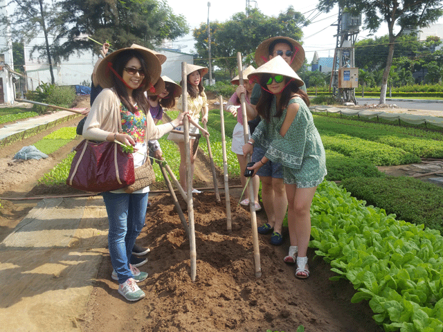 Cô Fujino Chiharu - du khách Nhật Bản, tham gia tour trải nghiệm làm nông dân do bà Công hướng dẫn chia sẻ, rất thích thú khi tham gia tour này. “Cô chủ vườn rất vui tính khiến chúng tôi rất vui”, cô Fujino Chiharu vui vẻ nói.