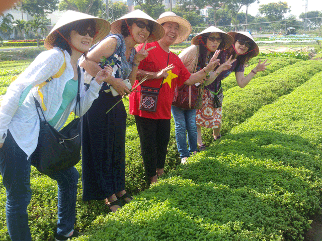 "Tôi không nhớ mình hướng dẫn bao nhiêu đoàn khách. Để có thể hướng dẫn khách du lịch làm nông nghiệp, ngoài biết tiếng anh còn phải hiểu quy trình làm của người nông dân như vậy mới có thể chia sẻ cho du khách hiểu. Mỗi ngày tôi tiếp từ 1-2 đoàn khách đến du lịch, tham quan vườn rau, mỗi đoàn từ 2-7 người, chủ yếu là khách Mỹ, Trung Quốc, Nhật, Hàn Quốc, Hồng Kông… tiền công hướng dẫn mỗi khách 50.000 đồng”, bà nói và cho biết thêm.