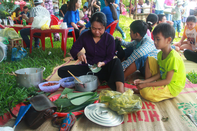 Đến với phiên chợ, du khách còn được thưởng thức các sản vật của địa phương.