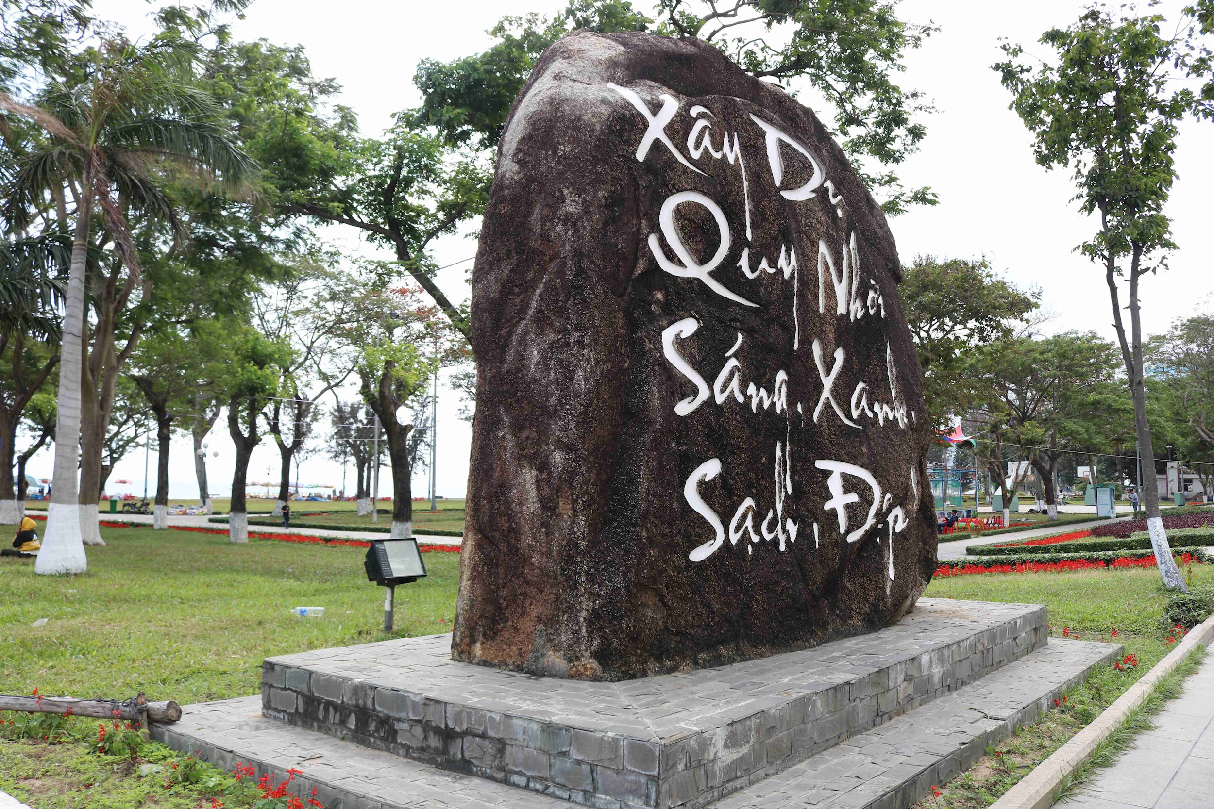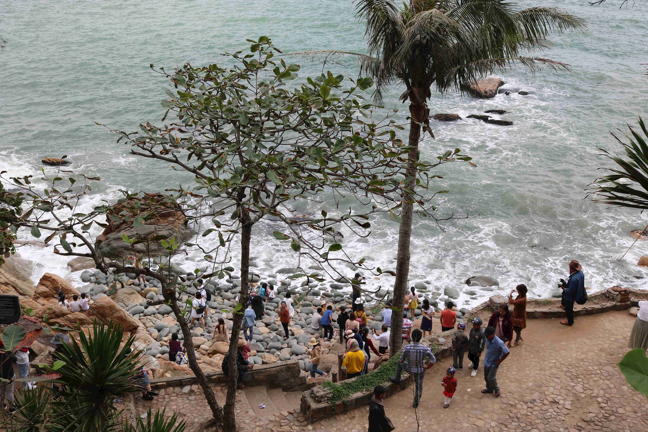 Điểm đầu tiên chúng tôi ghé đến là Khu di tích danh lam thắng cảnh Ghềnh Ráng tại phường Ghềnh Ráng, thành phố Quy Nhơn. Từ dốc Mộng Cầm lên mộ Hàn Mạc Tử, qua nhà hàng Hoàng Hậu, bãi tắm Hoàng Hậu, Hòn Chồng hai bên đường sạch sẽ, bóng cây che mát mẻ, cảnh vật sinh động hòa cùng dòng người tham quan thưởng lãm đều trở nên đẹp đẽ lạ thường.