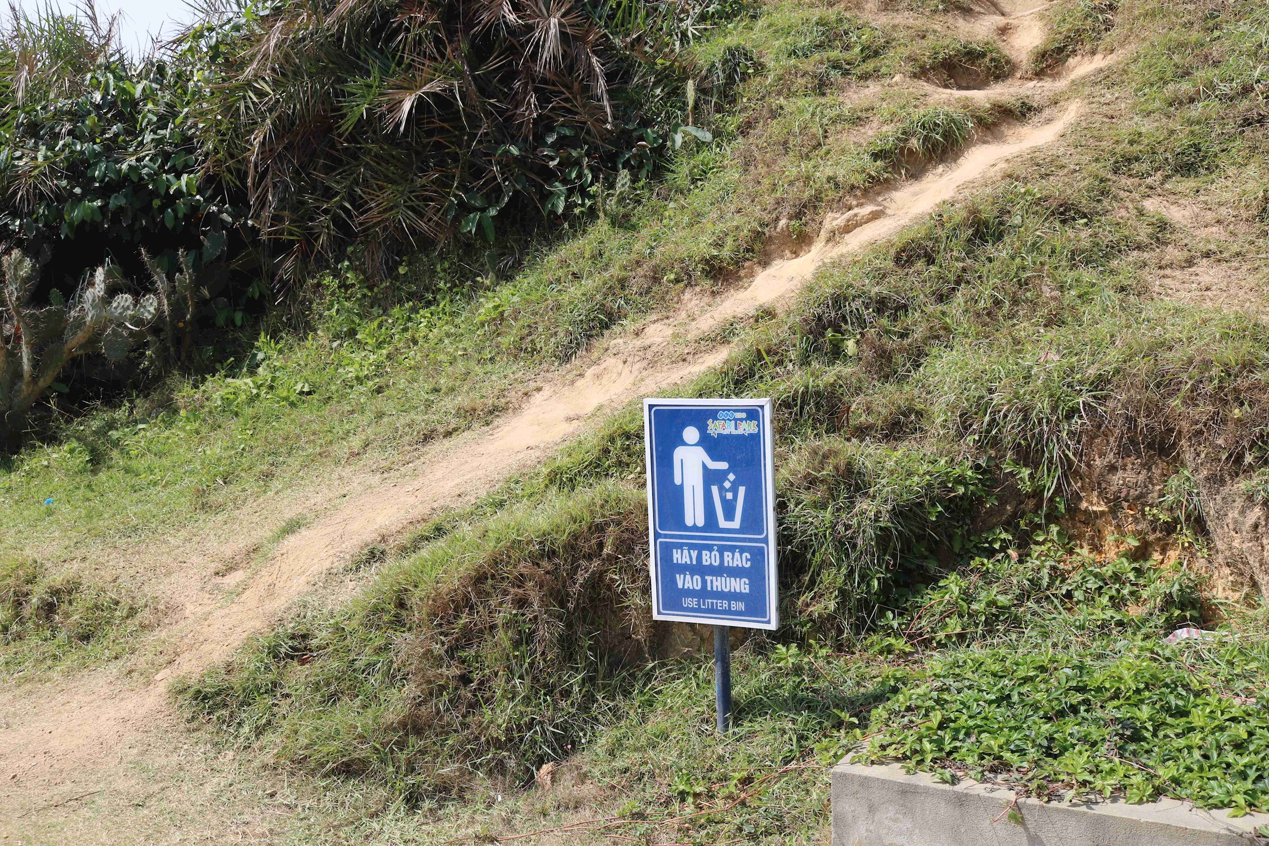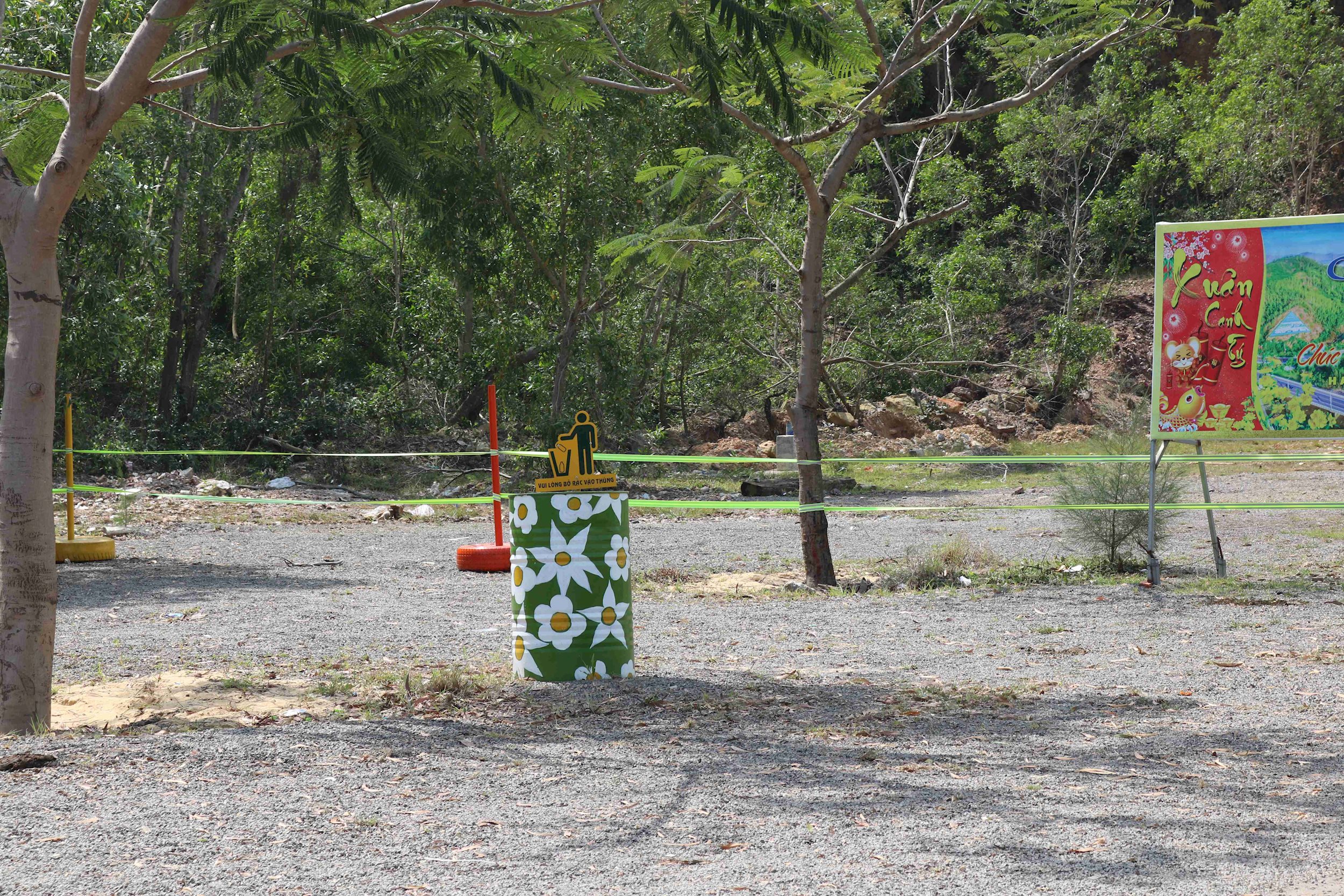 Tại các điểm ra vào Khu du lịch Eo Gió đều có bảng chỉ dẫn “Hãy bỏ rác vào thùng”.
