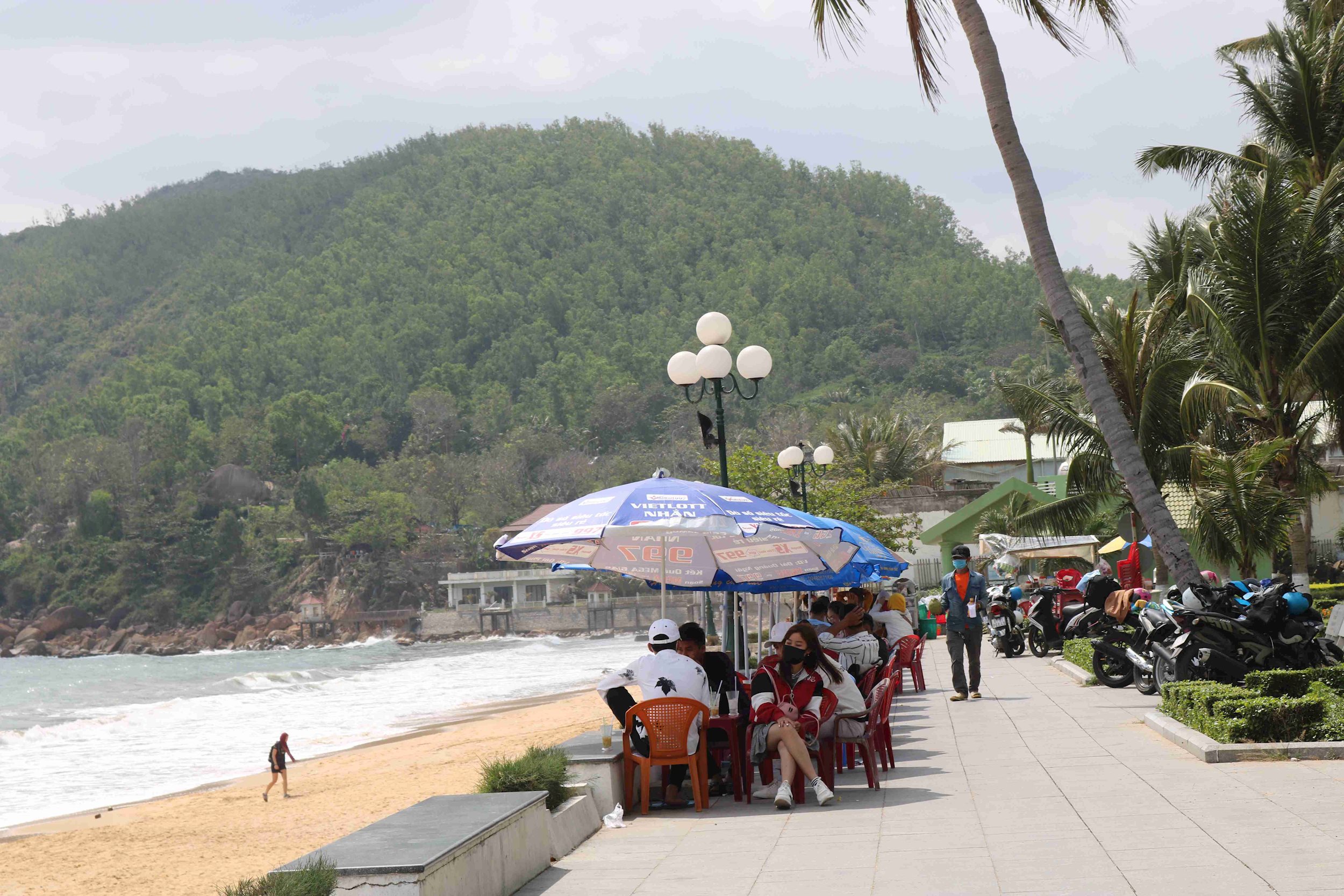 Nơi tiếp theo chúng tôi đi ngang qua là bãi biển Quy Nhơn. Mặc dù dịp Tết lượng khách đến thành phố Quy Nhơn khá đông, chủ yếu để tắm biển, thưởng thức món ăn hải sản của thành phố biển hiền hòa này, nhưng bãi biển vẫn đẹp lung linh trải dài, uốn lượn dưới màu nắng vàng rực rỡ. Vẻ đẹp của biển đã không bị mất đi bởi rác thải hay bất kỳ thứ rác nào khác.