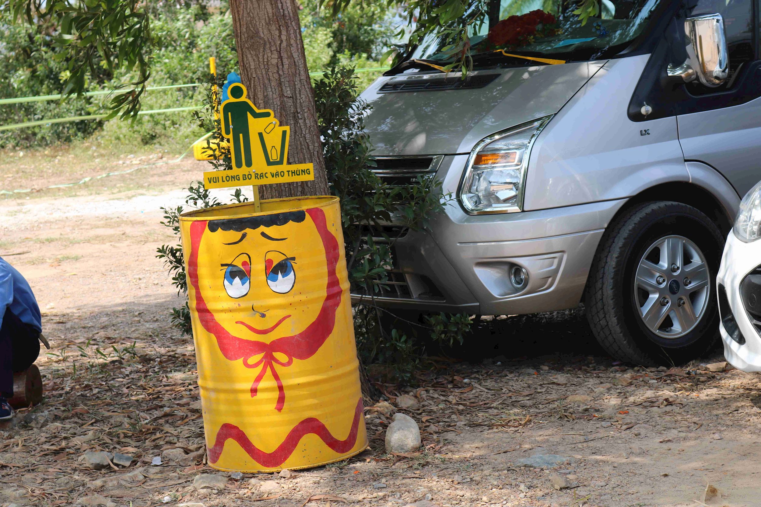 Nhưng có lẽ điều làm chúng tôi ngạc nhiên và thích thú là những thùng rác được cách điệu, tô vẻ với nhiều hình thù, màu sắc bắt mắt, thu hút ánh nhìn ban đầu đối với du khách tại Khu du lịch Cửa Biển. Thùng rác với hình thù ông mặt trời trong gam màu vàng rực rỡ, kèm khẩu hiệu “Vui lòng bỏ rác vào thùng” cùng hình người chỉ tay vào thùng rác thật ngộ nghĩnh, đáng yêu.