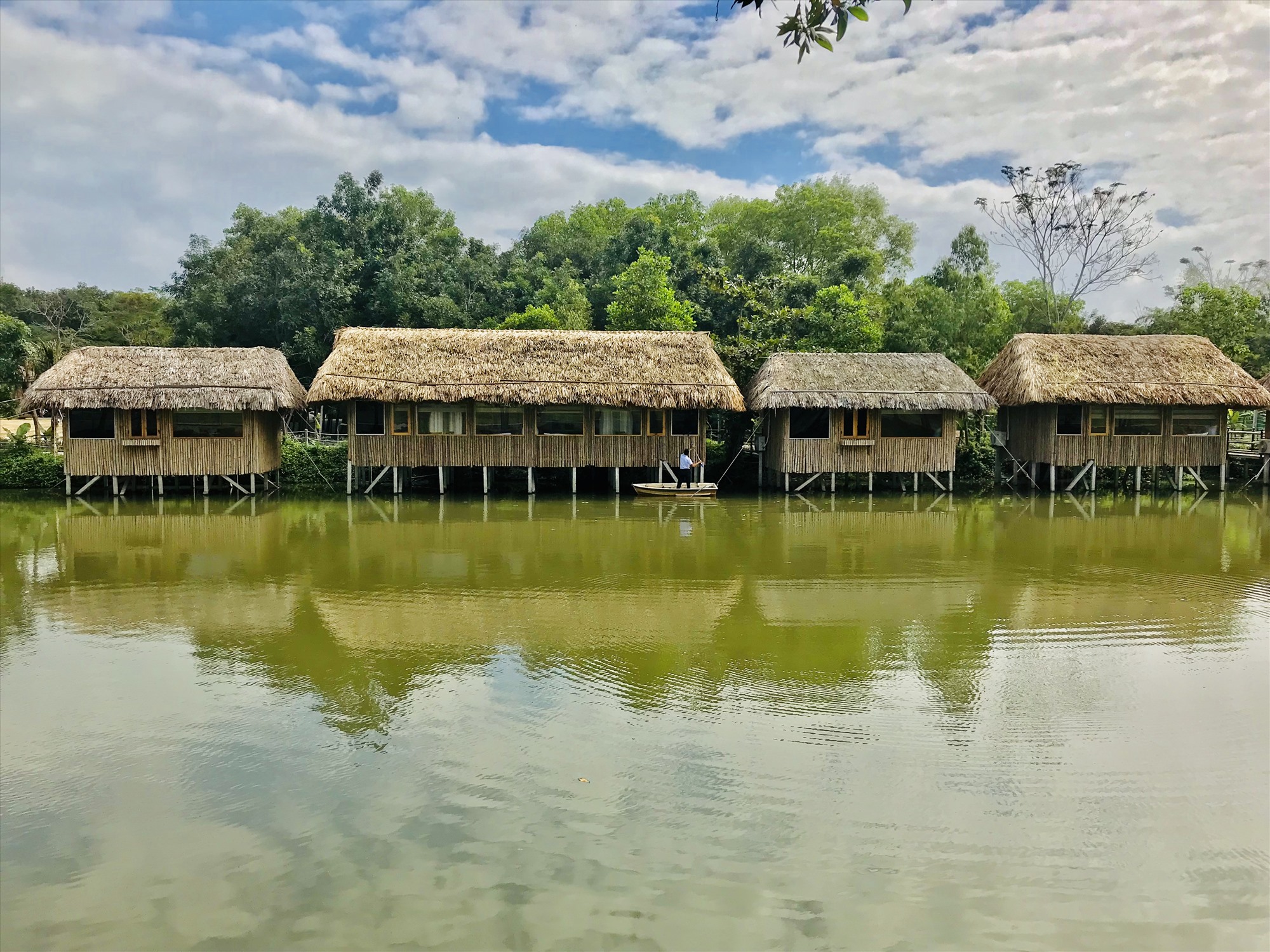 Cơ sở lưu trú thiết kế bằng vật liệu xanh đậm chất địa phương trong khu sinh thái rừng Hà Gia (thị xã Điện Bàn). Ảnh: Q.T