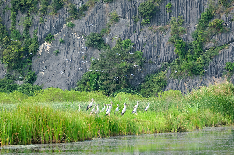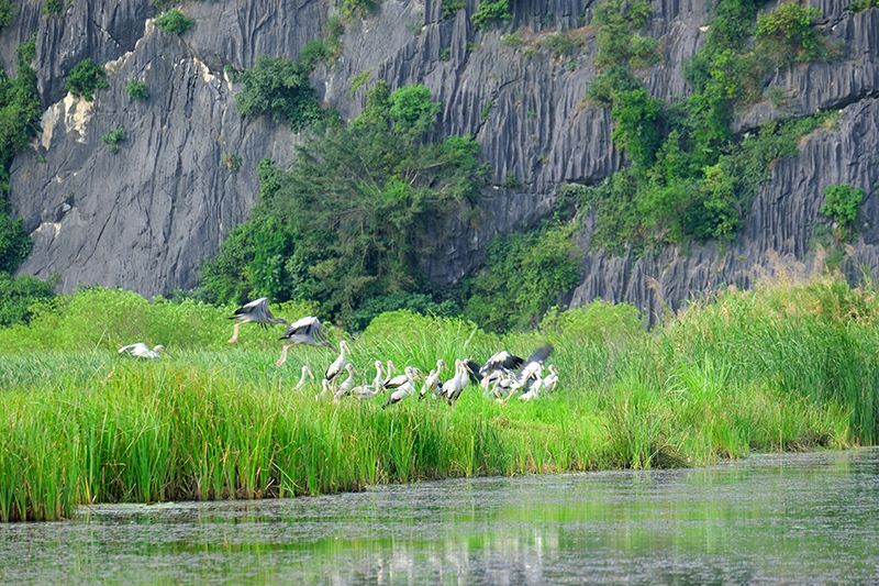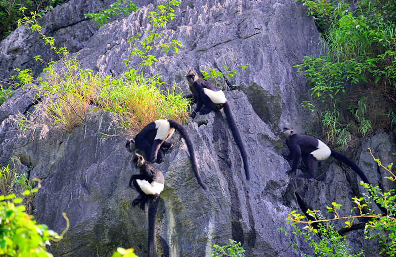 Giữa những dãy núi đá vôi kỳ vỹ, du khách có thể ngắm nhìn những cánh cò bay về tổ sau một ngày kiếm ăn, tận hưởng làn nước mát trong vắt đến độ có thể nhìn thấy các loài thủy sinh hay thích thú chiêm ngưỡng các cá thể voọc quần đùi đang kiếm ăn lưng chừng núi.