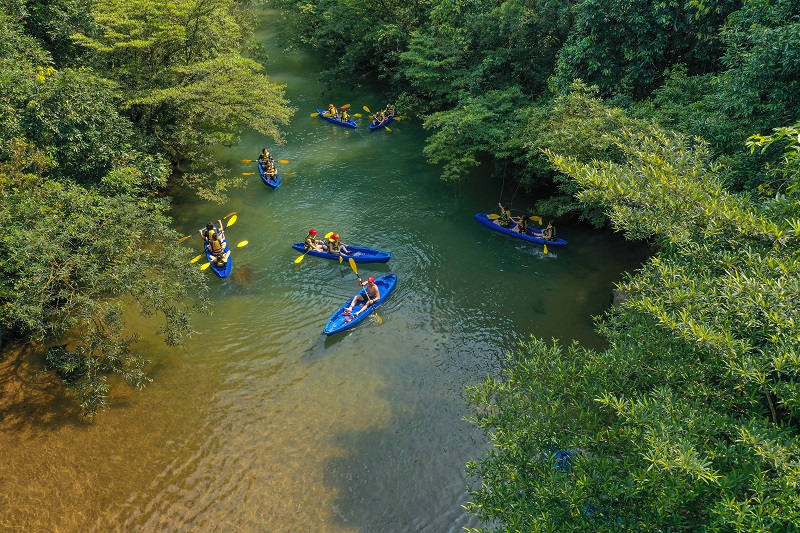 Tour Khám phá thung lũng hang Trạ Ang 1 ngày được thiết kế nhẹ nhàng phù hợp cho tất cả mọi lứa tuổi tham gia. Điểm nổi bật của hành trình này là các hoạt động ngoài trời vô cùng đa dạng để du khách thoải mái tham gia lựa chọn trải nghiệm, bao gồm: leo núi, trekking 1,5km trong rừng nguyên sinh; hòa mình vào thiên nhiên hoang sơ, hùng vĩ để cùng tìm hiểu về sự phong phú, đa dạng của hệ sinh thái trong Vườn Quốc gia; chèo thuyền kayak dọc theo dòng suối…