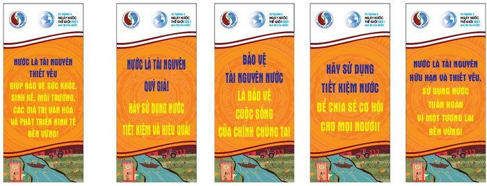 Cụ thể, treo pano, băng rôn, áp phích tại các khu vực công cộng, đường phố, trụ sở cơ quan và các địa điểm thích hợp để truyền tải thông điệp, chủ đề về tài nguyên nước.