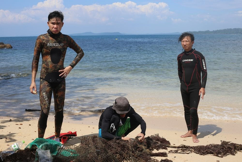 Anh Lê Chiến cùng đội SST thu dọn lưới ma