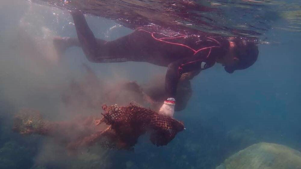 Phía xa xa, ngay mép nước là những người con của biển đang âm thầm làm những công việc “không ai nhờ, mà cũng ai bảo”. Đó là Nhóm cứu hộ sinh vật hoang dã Sasa team. Bất ngờ, một chú rùa con được đội giải cứu sinh vật biển thả ra từ những tấm lưới cũ chìm dưới biển, những tấm lưới này được anh Lê Chiến gọi là “lưới ma”. Anh Chiến giải thích: “Chúng tôi gọi đây là lưới ma, vì những tấm lưới này như bóng ma dưới đáy biển, âm thầm giết các sinh vật không may vướng vào chúng”. Công việc cắt lưới ma có đơn giản? đó là câu hỏi tôi đưa ra, anh Chiến cho biết: “Công việc cắt lưới ma không đơn giản, bởi trong lưới ngoài những sinh vật có độc như cá, rắn, còn có thể chứa vật sắc nhọn, gây nguy hiểm cho đội cứu hộ của chúng tôi”.