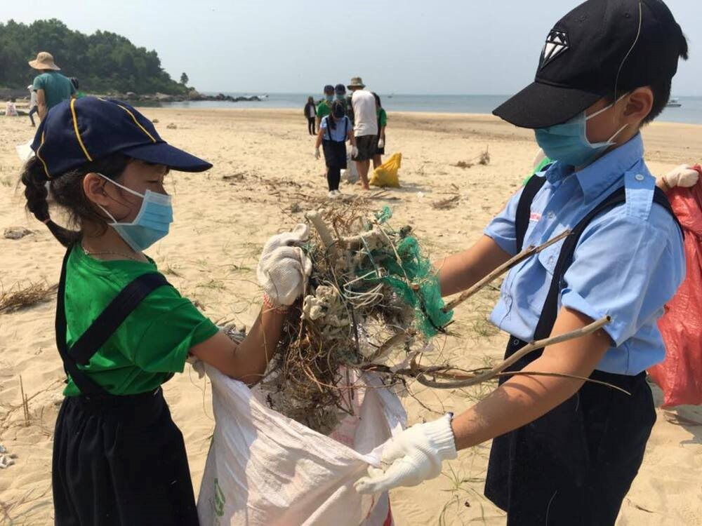 Các bạn nhỏ cùng SST chung tay dọn rác trên biển