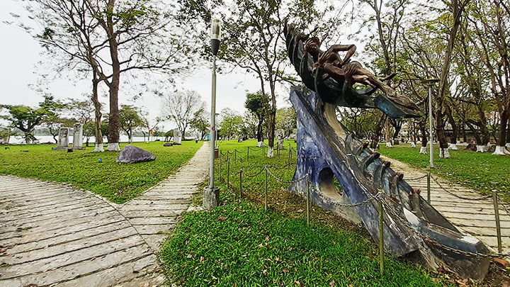 Dưới tán lá ở các công viên hai bờ sông, 86 tác phẩm tượng bố trí khắp nơi. Đến công viên, người dân, du khách hòa mình vào không khí trong lành, thưởng thức những tác phẩm tượng nhiều trường phái. Nhưng qua nhiều năm tồn tại, không gian tượng ngoài trời bên sông Hương đang cần quan tâm nhiều hơn.