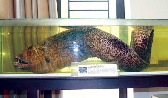Loài cá được nhiều du khách tò mò nhất tại bảo tàng là cá Chình biển. Đây là loài động vật săn mồi có hình dạng khá kỳ lạ. Cá Chình biển sống ở vùng nước nông, thích ẩn mình dưới đáy biển hoặc ẩn mình ở các hang, hốc sâu. Chúng có thể dài đến vài mét, có nhiều răng sắc nhọn, da trơn, lốm đốm như mình con báo gấm. Chúng rất thích ăn các loại cá con và tôm và thường sống đơn lẻ, khi bắt cá Chình biển nếu không cẩn thận sẽ bị nó cắn hoặc làm bị thương.