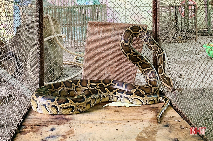 Trăn gấm (Python reticulatus) nặng 7kg, dài 1,6m được VQG Vũ Quang chăm sóc trước khi thả về môi trường tự nhiên