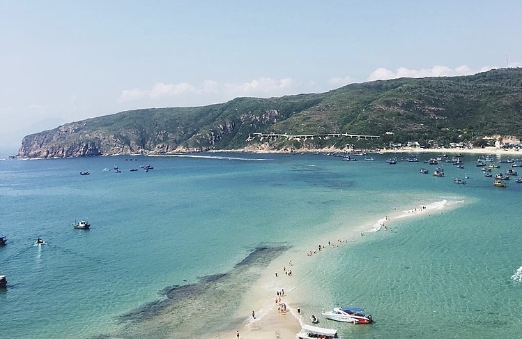 Hòn Khô hấp dẫn du khách bởi “con đường xuyên biển” dài 500 mét. Ảnh internet