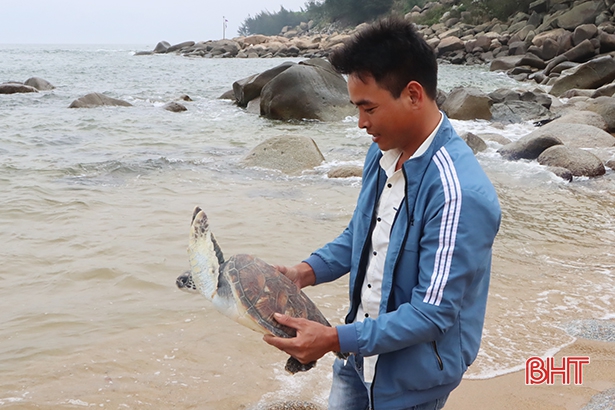 Tiếp đó, rạng sáng ngầy 27/3, trong khi thả lưới ở vùng biển Cửa Nhượng, ngư dân Võ Quang Hoà (thôn Đông Tây Xuân, xã Cẩm Hà, Cẩm Xuyên) đã bắt được một con rùa biển quý hiếm. Anh Hoà đã liên hệ với chính quyền địa phương để thả con rùa biển về với môi trường tự nhiên. Theo cơ quan chức năng, con rùa biển nặng 5,2 kg, mai màu đỏ, dưới bụng màu vàng, là động vật quý hiếm nằm trong Sách đỏ Việt Nam.
