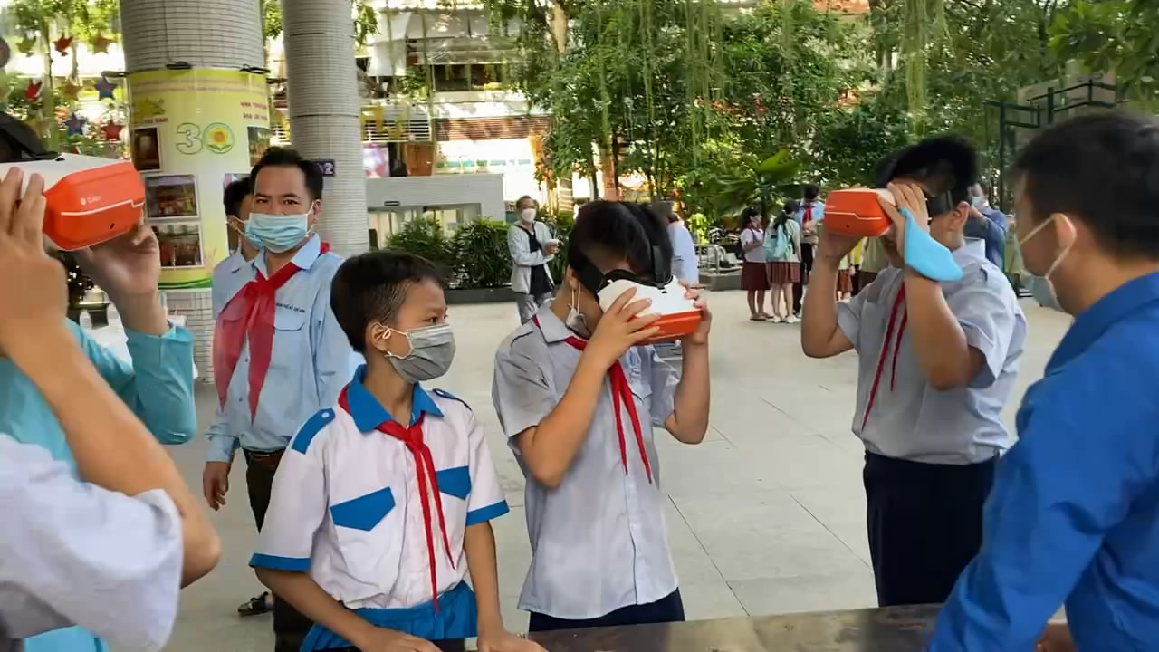 Học sinh tìm hiểu khoa học qua kính thực tế ảo (VR)