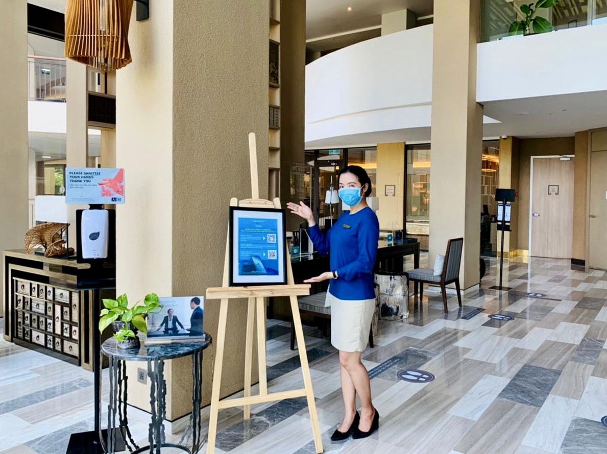 InterContinental Phu Quoc Long Beach chủ động in và đặt mã QR tại sảnh đón tiếp (Ảnh: Khách sạn cung cấp)