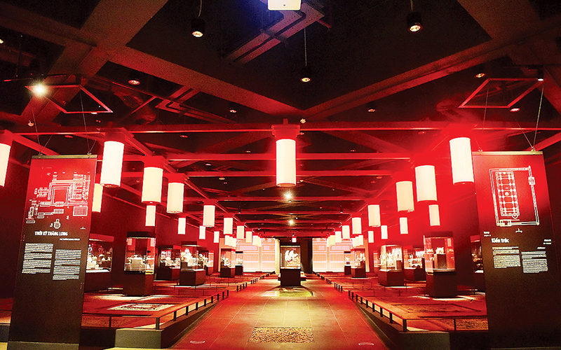 Lạc vào không gian Phòng trưng bày Khảo cổ học Hoàng thành Thăng Long với hơn 400 di vật và xấp xỉ 10 di tích (được chọn lọc từ hàng chục nghìn di vật và 140 di tích phát lộ từ nền móng xưa cũ), khách tham quan thích thú khi được dẫn dắt tìm hiểu những chủ đề cùng câu chuyện khác nhau, theo một cách thức sống động. Được phân theo lát cắt địa tầng khảo cổ học, diễn biến theo trục thời gian tuyến tính, bảo tàng tọa lạc ngay dưới tầng hầm tòa nhà Quốc hội bao gồm hai không gian chính: Tiền Thăng Long và Thăng Long (trước dấu mốc 1010 và từ năm 1010 trở đi).