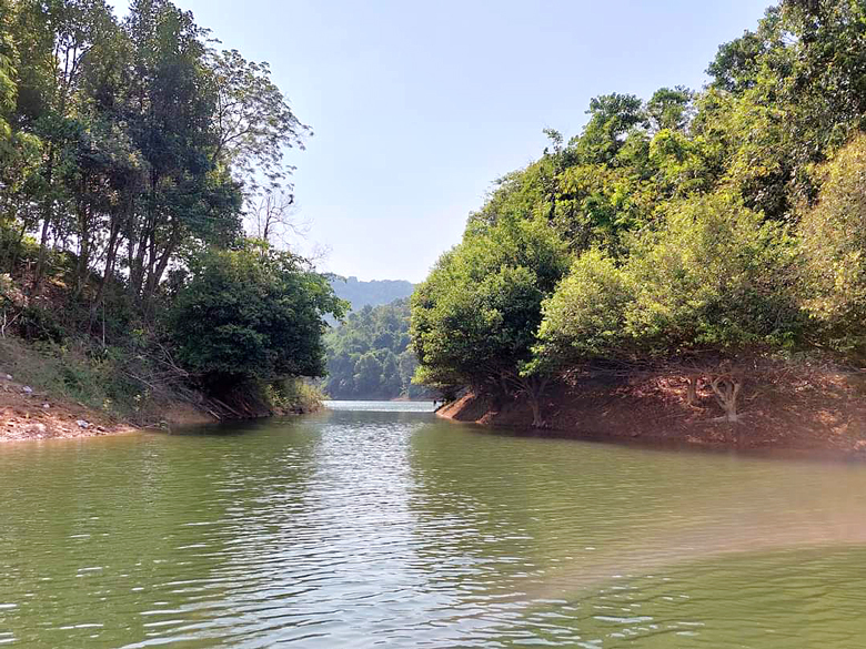 Đúng ngày nắng đẹp, mặt hồ xanh biếc mênh mông, thi thoảng vài con sóng lăn tăn gợn lên khi làn gió nhẹ thổi qua. Vài chiếc thuyền nan neo nghỉ gợi vẻ thanh bình. Buổi bình minh, sương còn phủ kín mặt hồ, lãng đãng trong mờ tỏ là bóng cây bóng núi xa thăm thẳm, bầu trời xanh ngắt in xuống đáy nước phẳng lặng như gương, những tia nắng đầu ngày lấp lóa. Chiếc thuyền đưa du khách len lỏi qua những quả đồi giống những chiếc nấm xanh nổi bồng bềnh trên mặt nước, cỏ cây và chim muông đua hót. Đập tràn điều tiết nguồn nước tạo nên con thác như chiếc màn mỏng manh đổ xuống dội vào lòng đá thành dòng chảy tuyệt đẹp, khiến người ta muốn ngồi mãi đây chẳng muốn về. Ngược về thượng nguồn phía Đông Bắc, thuyền đi qua những vách núi, hai bên bờ rừng cây cổ thụ um tùm, dây leo chằng chịt của rừng mưa nhiệt đới đưa ta lạc vào chốn thiên nhiên hoang dã như chưa từng có dấu chân người. Lặng ngắm mặt hồ tĩnh lặng, cảnh sắc tươi đẹp, thi thoảng có chú khỉ lò dò trên bờ, trong lùm cây đưa ánh mắt lạ lẫm đến thú vị. Hoàng hôn buông xuống, những tia nắng yếu ớt lan trên trập trùng núi đồi phía xa, tràn xuống thung lũng và trải dài trên mặt hồ, bóng chiều chạng vạng đổ dài. Trên bờ đập, nhiều người hóng mát ngắm ánh hoàng hôn dát vàng trên mặt hồ, cảm nhận cuộc sống thanh bình.
