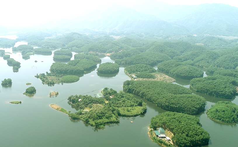 Với không gian hồ nước mênh mông, những hòn đảo lớn nhỏ xanh thẳm giữa vùng non nước hữu tình, nơi đây được coi là lá phổi xanh nơi cửa ngõ vùng Tây Bắc, là “vịnh Hạ Long trên núi".