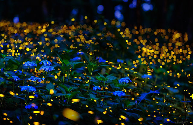 Những sinh vật kỳ diệu này lại biến cánh rừng trở thành sân khấu siêu đẹp để thể hiện màn trình diễn ánh sáng kỳ ảo của mình và hấp dẫn bạn tình. Những đốm sáng ban đầu chỉ rải rác rồi dần tụ lại, chúng hợp vào nhau lấp lánh như những quả cầu sáng nhỏ xinh, lung linh trong đêm tối.