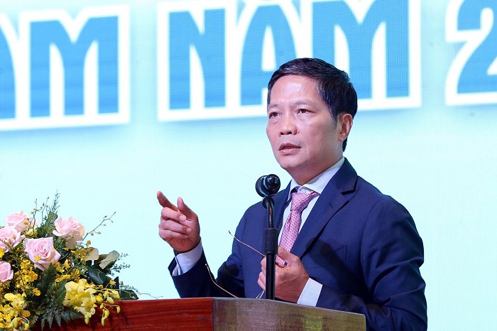 Đại điện Bộ Nông nghiệp và Phát triển nông thôn, đồng chí Trần Đình Luân, Tổng cục trưởng Tổng cục Thủy sản phát biểu
