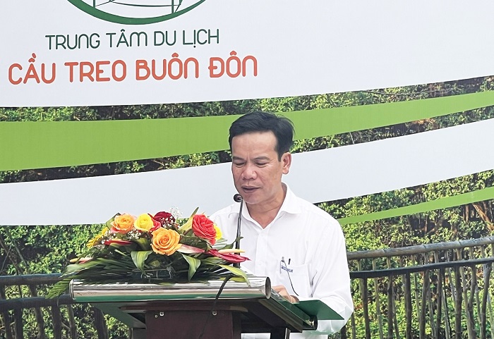 Ông Nguyễn Đức, Phó Giám đốc Trung tâm Du lịch Cầu treo Buôn Đôn phát biểu tại buổi lễ