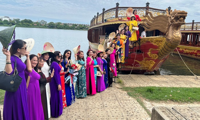 Tại chương trình, đoàn đã tham gia ngự thuyền trải nghiệm bình minh trên sông Hương, giao lưu ca Huế, tham gia tour du lịch ẩm thực Cố đô, áo dài Huế…