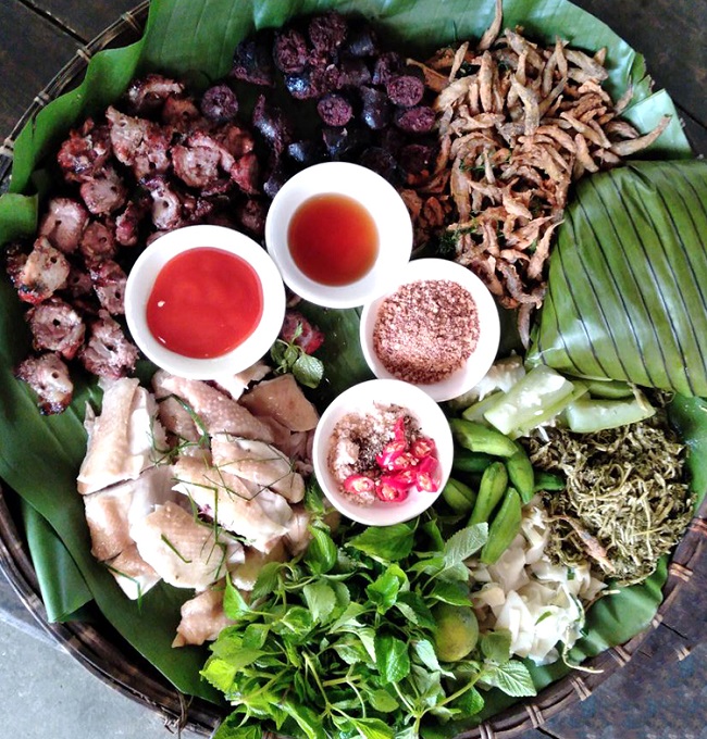 Đến thác Mơ, du khách được thưởng thức nhiều món đặc sản, dân dã của đồng bào Mường.