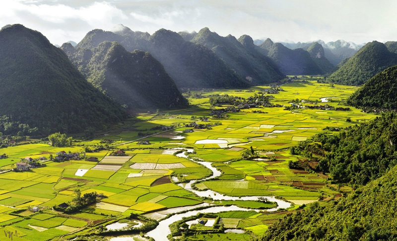 Các thung lũng giữa núi phân cách nhau bởi các cụm đỉnh dạng chóp nón, yên ngựa nối đỉnh, tạo nên địa hình của các kiểu phân rã đặc trưng thông thường được đánh dấu bởi các hệ thống thoát nước theo hang động ngầm dưới đất, nhiều phân vị địa chất, mặt cắt địa chất chuẩn, nhiều kiểu loại hóa thạch…