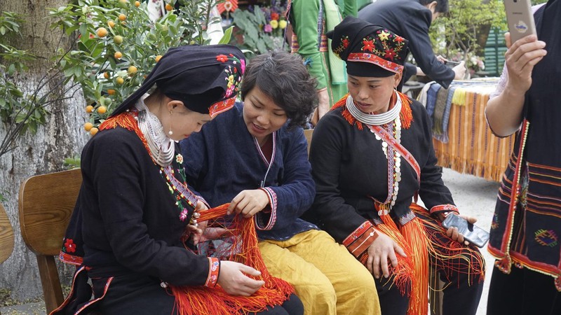 Phụ nữ dân tộc thiểu số dệt vải trong dự án hợp tác với Chie.