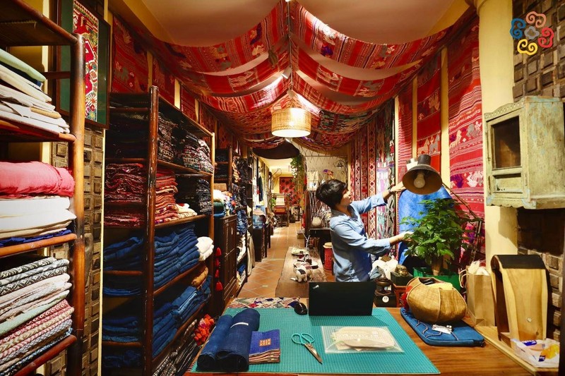 Vải thổ cẩm được trưng bày tại không gian của Chie.