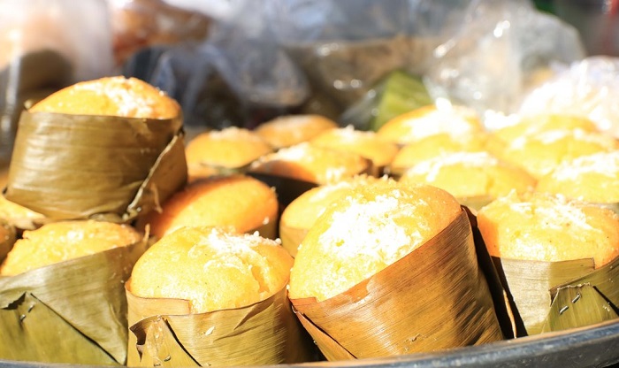 Khách sành ăn sẽ rất thích loại bánh được bày bán khắp nơi trong “ngày hội”, mang tên “bánh bò thốt nốt An Giang”. Bánh bò vàng ươm, được tạo nên từ đường thốt nốt. Bánh ngon, xốp mềm hay không là nhờ hạt gạo ủ khéo. Vị ngọt thanh của đường thốt nốt hòa quyện với vị béo ngậy của nước cốt dừa, tạo nên món ăn vặt khó lẫn vào đâu.