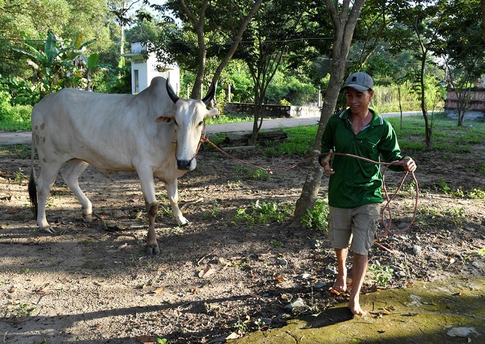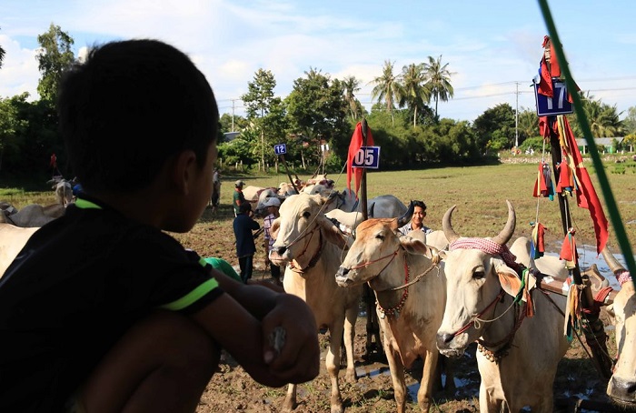 Nhiều chú bò được quấn khăn rằn, y hệt như nét văn hóa trang phục truyền thống của đồng bào dân tộc thiểu số Khmer nơi đây. Chiếc khăn tô điểm cho chú bò trở nên ngộ nghĩnh, đáng yêu. Tụi nhỏ thích lắm, tìm chỗ quan sát bò thật gần.