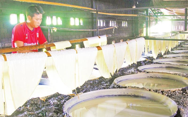 Phơi tàu hũ ky ở cơ sở sản xuất tàu hũ ky của ông Ðinh Công Hoàng, xã Mỹ Hòa, thị xã Bình Minh, tỉnh Vĩnh Long.