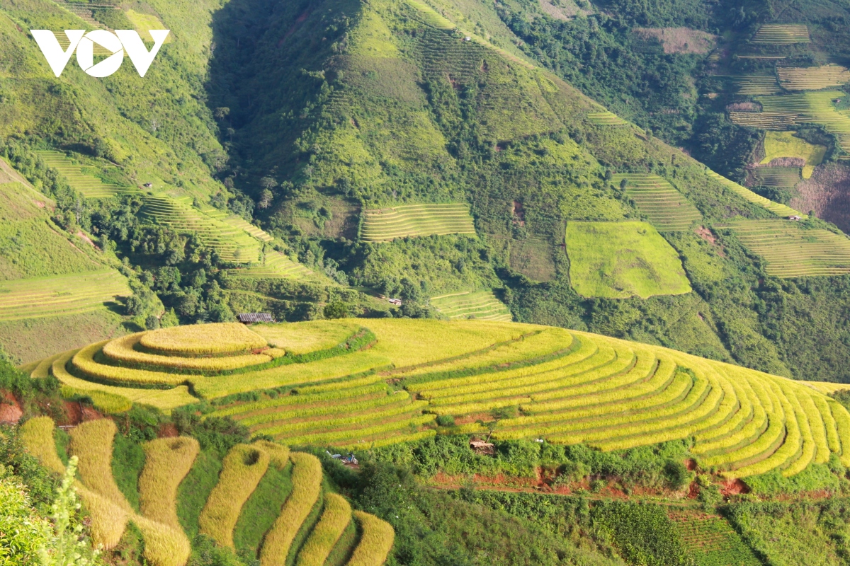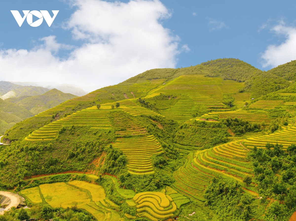Những dải lụa vàng uốn lượn quanh sườn núi