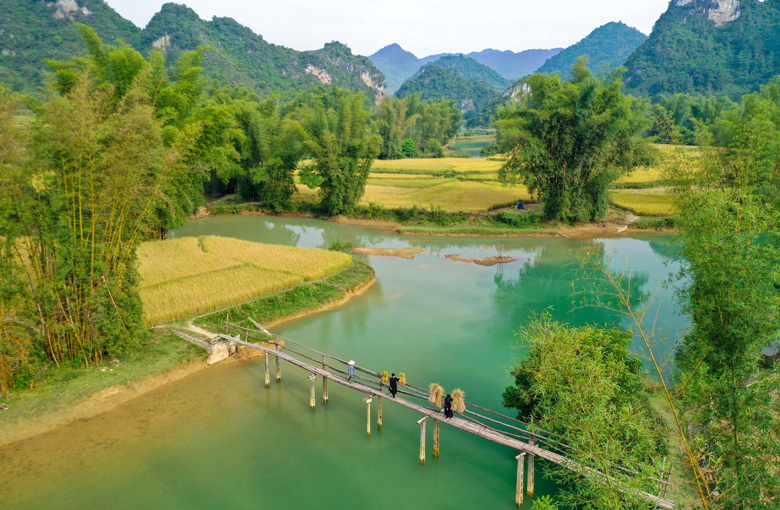 Cứ mỗi độ thu về, năm nào cũng vậy, tôi lại vác ba lô máy ảnh đi Trùng Khánh, để leo lên đỉnh những ngọn núi đá cheo leo hùng vĩ ở miền biên giới xa xôi phía Đông Bắc của Tổ quốc ngắm cảnh làng quê yên bình nhưng vô cùng diễm lệ bên những ruộng lúa chín vàng rực rỡ.