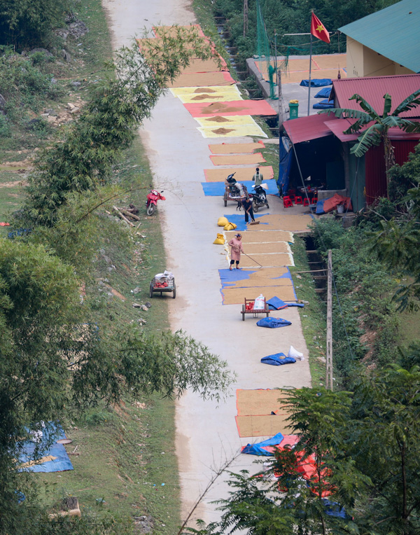 Người dân tận dụng những con đường nông thôn mới để phơi lúa