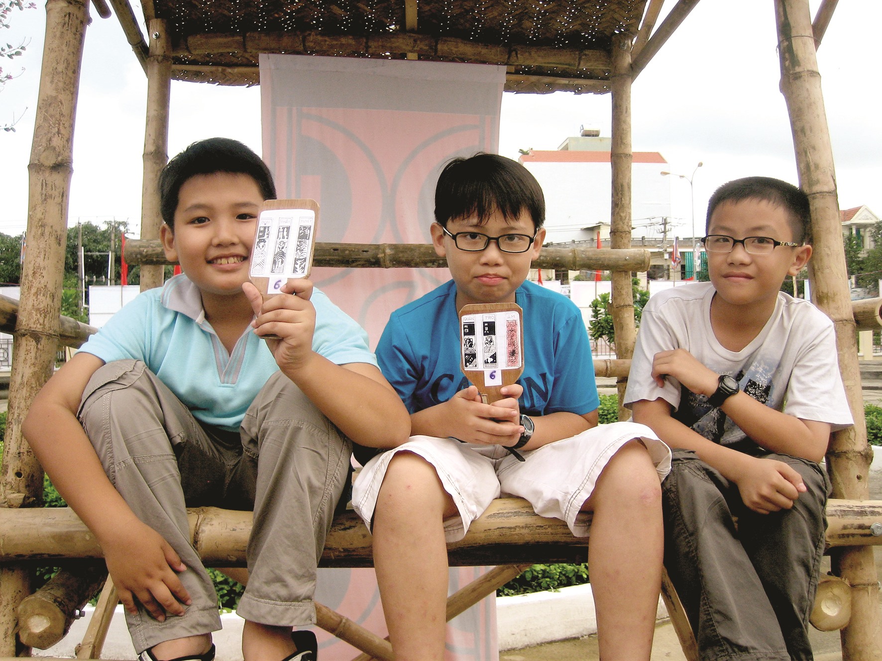 Trẻ con cũng tham gia chơi bài chòi. Ảnh: Trần Đăng