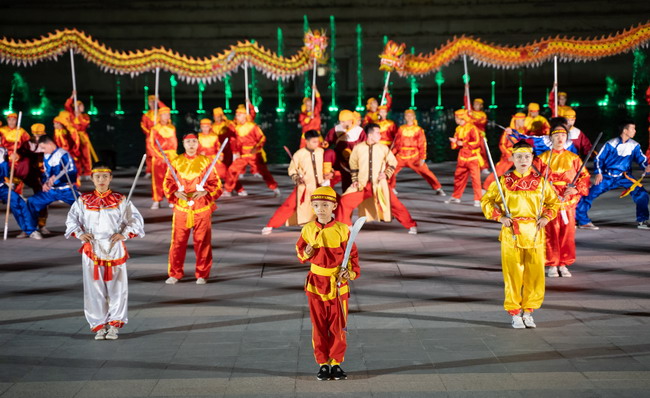 VĐV Trung tâm Võ thuật cổ truyền Bình Định biểu diễn tại MerryLand Quy Nhơn (xã Nhơn Hải, TP Quy Nhơn). Ảnh: Nguyễn Dũng