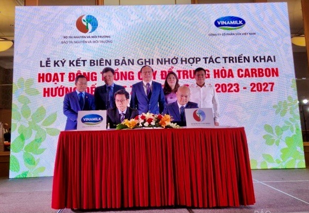 Chiều 25/11 tại Hà Nội, Báo Tài nguyên và Môi trường và Công ty Vinamilk đã tổ chức Lễ ký biên bản hợp tác triển khai hoạt động trồng cây để trung hòa các-bon, hướng đến Net Zezo giai đoạn 2023-2027.