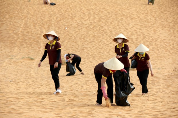 Hơn 200 người lao động đang làm việc tại gần 20 doanh nghiệp du lịch trên địa bàn thành phố Phan Thiết phối hợp với lực lượng đoàn viên, thanh niên, Bộ đội Biên phòng và người dân đồng loạt tham gia thu gom rác thải, làm vệ sinh tại 5 khu vực là: đồi cát Mũi Né, làng chài Mũi Né, bãi biển Đá Ông Địa, Công viên biển Đồi Dương và khu vực biển Tiến Thành. Tại đây, các nhóm tiến hành quét dọn, phát quang, thu gom rác thải nhựa, tập kết và xử lý rác; đồng thời tổ chức tuyên truyền, vận động người dân, du khách cùng chung tay giữ gìn và bảo vệ môi trường sống xanh - sạch - đẹp, tạo chuyển biến tích cực về cảnh quan môi trường, nếp sống văn minh, ngăn chặn tình trạng xả rác không đúng quy định…