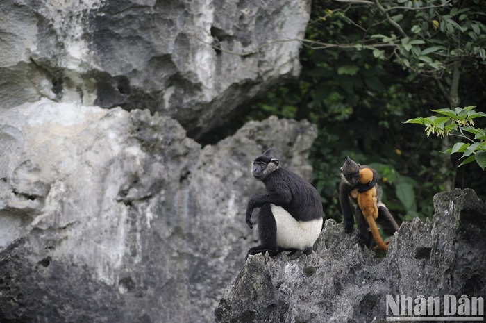 Gia đình voọc quần đùi trắng. (Ảnh: Trung tâm Bảo tồn Thiên nhiên và Phát triển)