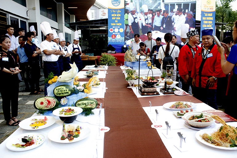 Các đầu bếp trình diễn các món ăn trong sự kiện xác lập lỷ lục 101 món ăn từ cá ngừ đại dương Phú Yên. Ảnh: Trần Quới