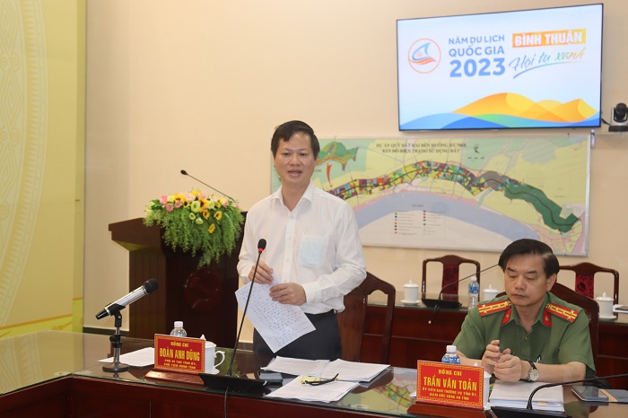 Tại cuộc họp, ông Bùi Thế Nhân - Giám đốc Sở Văn hóa, Thể thao và Du lịch, Phó trưởng Ban Tổ chức Năm Du lịch quốc gia 2023 - Bình Thuận - Hội tụ xanh đã báo cáo công tác triển khai sự kiện được địa phương đăng cai trong thời gian qua. Đồng thời thông tin một số nội dung đang tiếp tục thực hiện cũng như đề xuất, kiến nghị những vấn đề liên quan Năm Du lịch quốc gia tại Bình Thuận nhằm đảm bảo tiến độ, yêu cầu, mục đích đề ra.