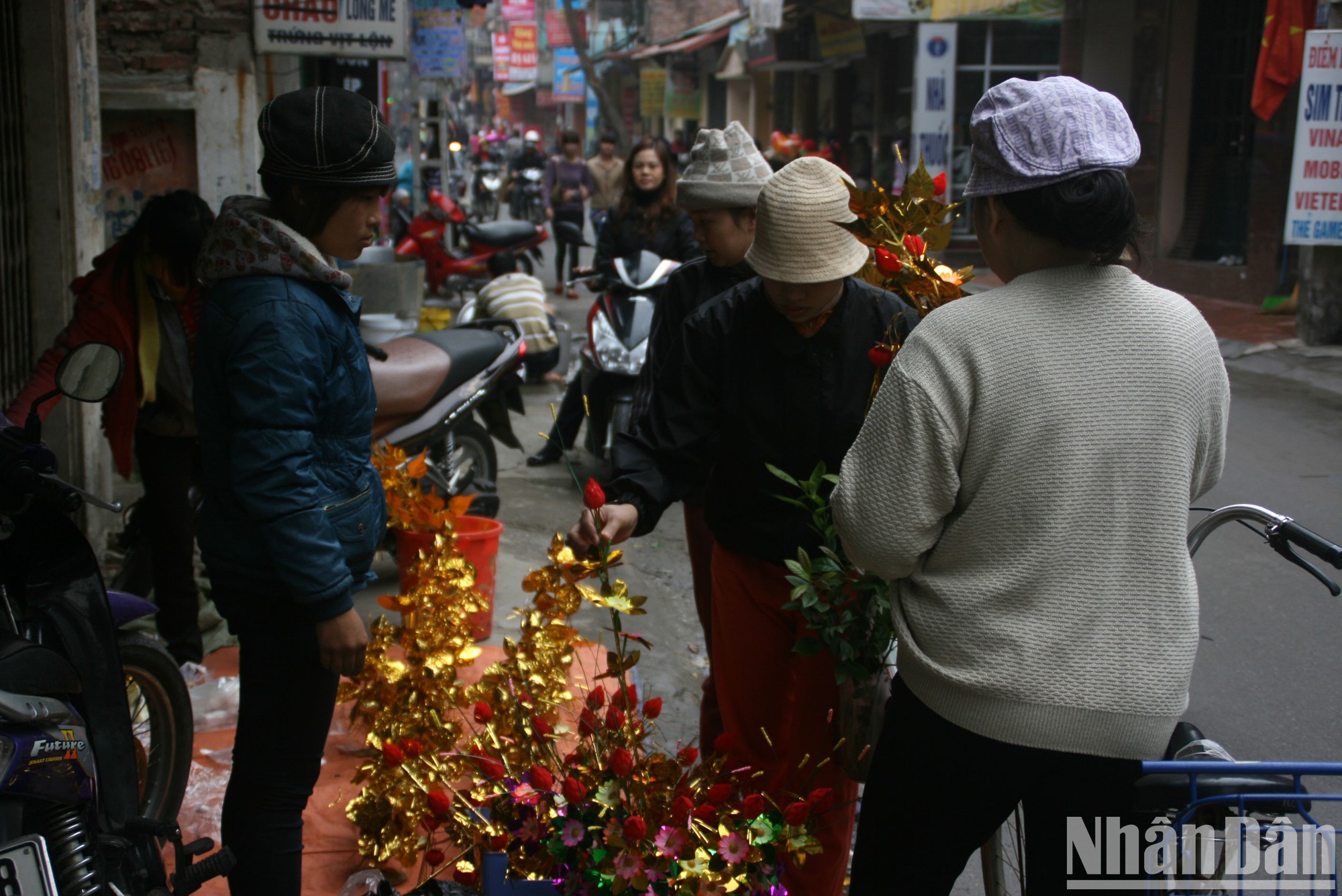 Mua sắm đồ mã trang trí bàn thờ dịp Tết. (Ảnh: Tuyết Loan)