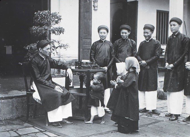 Con cháu chúc Tết các bậc bề trên trong một gia đình Việt hồi đầu thế kỷ 20. (Ảnh tư liệu)