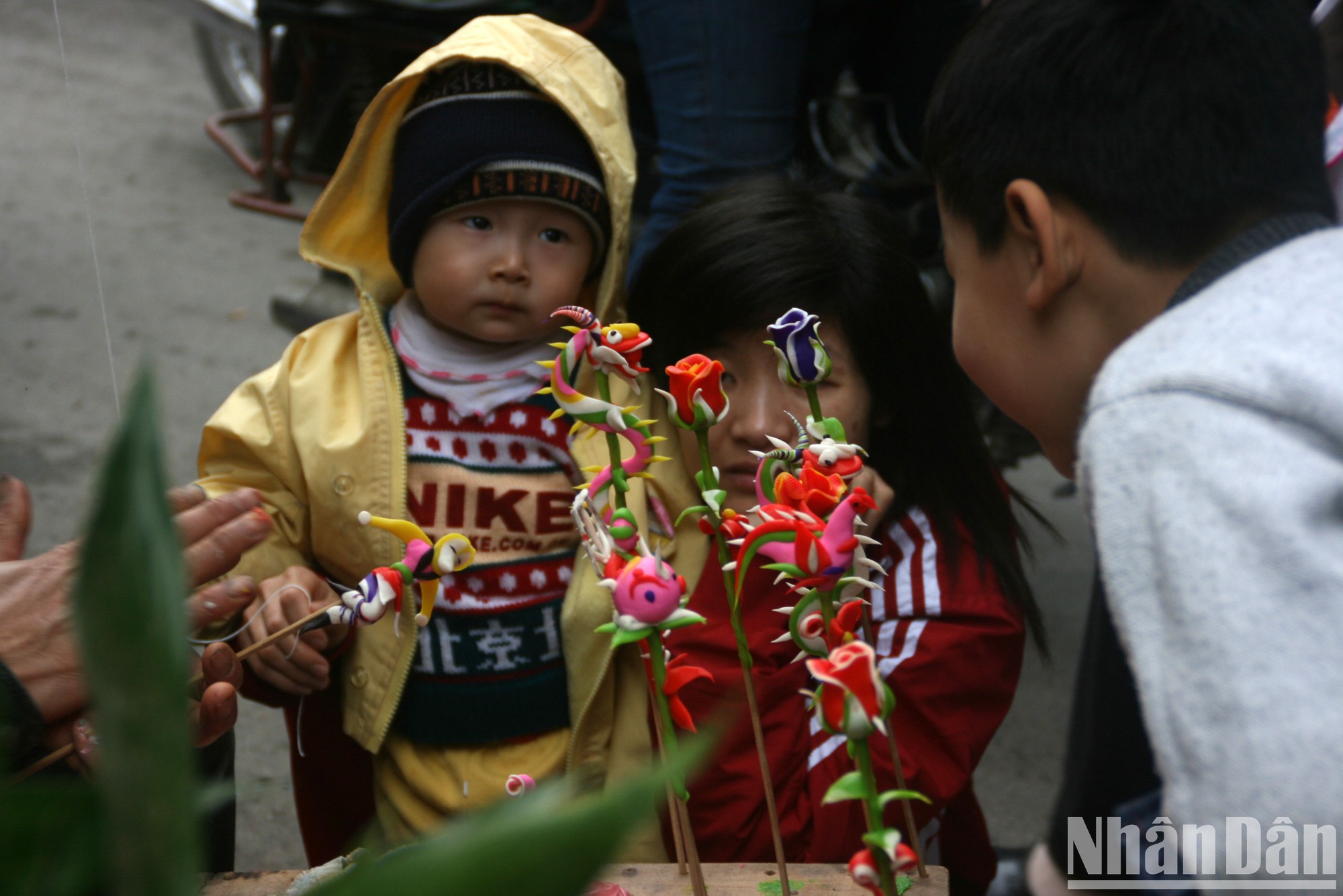 Em bé đi chơi chợ Tết làng Mọc Quan Nhân. (Ảnh: Tuyết Loan)