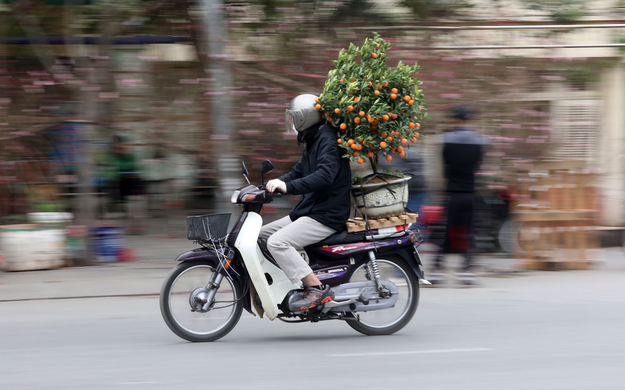 Mang mùa xuân về nhà. (Ảnh: Khiếu Minh)