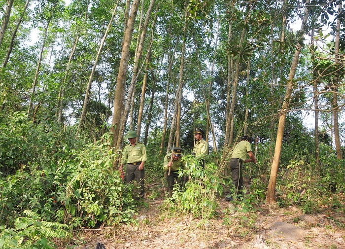 Lực lượng kiểm lâm khu vực phối hợp với các địa phương tăng cường bảo vệ rừng giáp ranh nhằm bảo tồn đa dạng sinh học.